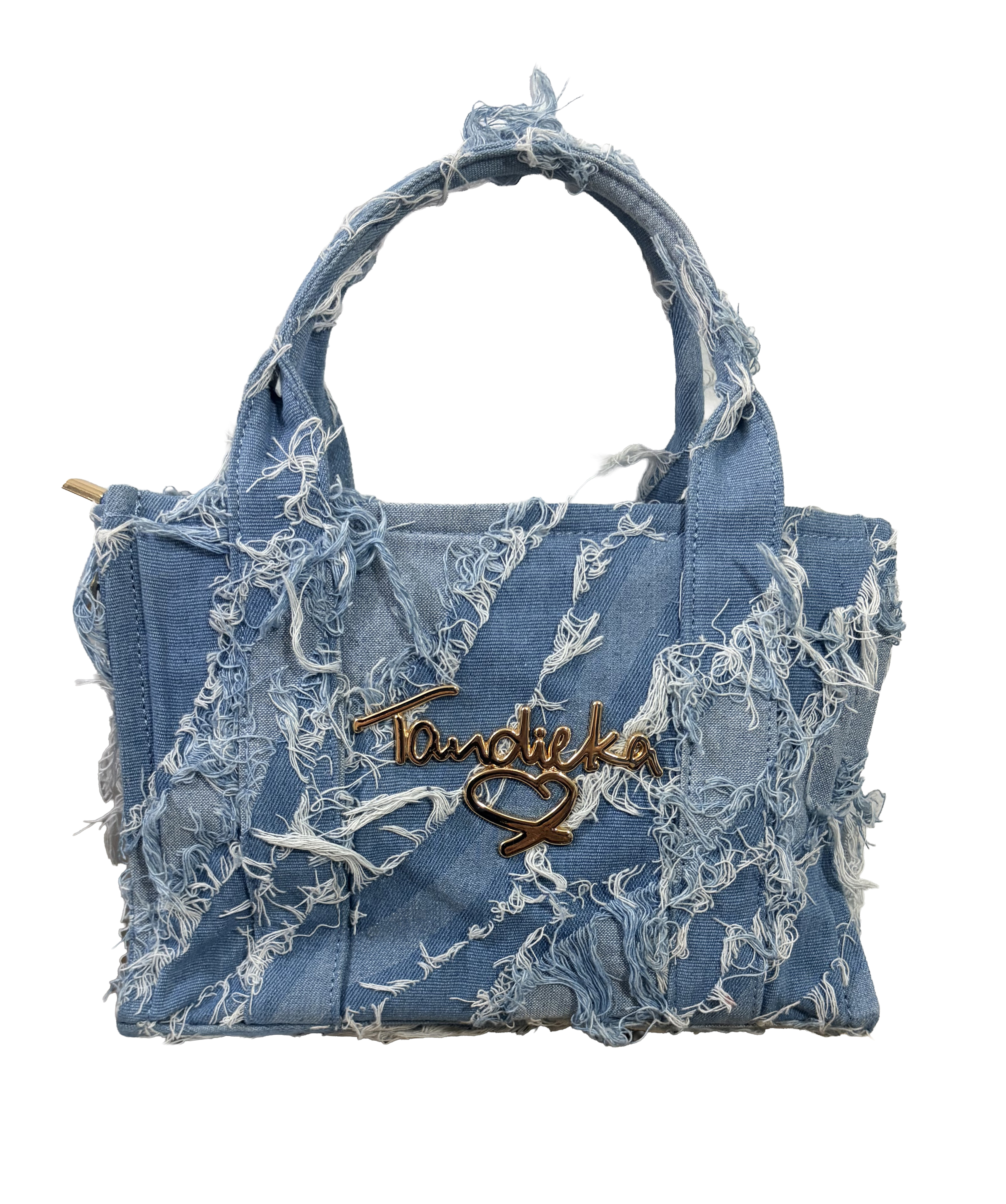 Here’s a denim bag that showcases not only style but an attitude. The Tandieka shredded denim bag, is a one of a kind bag, where each one is unique in its own design. With two metal logos on each side. Everyone will know you are wearing something that really means something!
